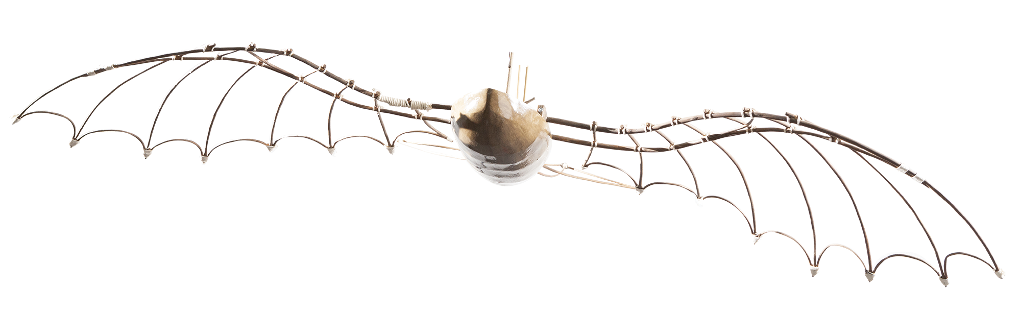 Leonardo da Vinci concibió esta máquina bajo la premisa de que los humanos podrían impulsar alas lo suficientemente grandes como para elevar un barco. El diseño aprovechaba el esfuerzo conjunto de los ocupantes, quienes, mediante mecanismos coordinados, batirían enormes alas para generar la fuerza necesaria para el despegue.