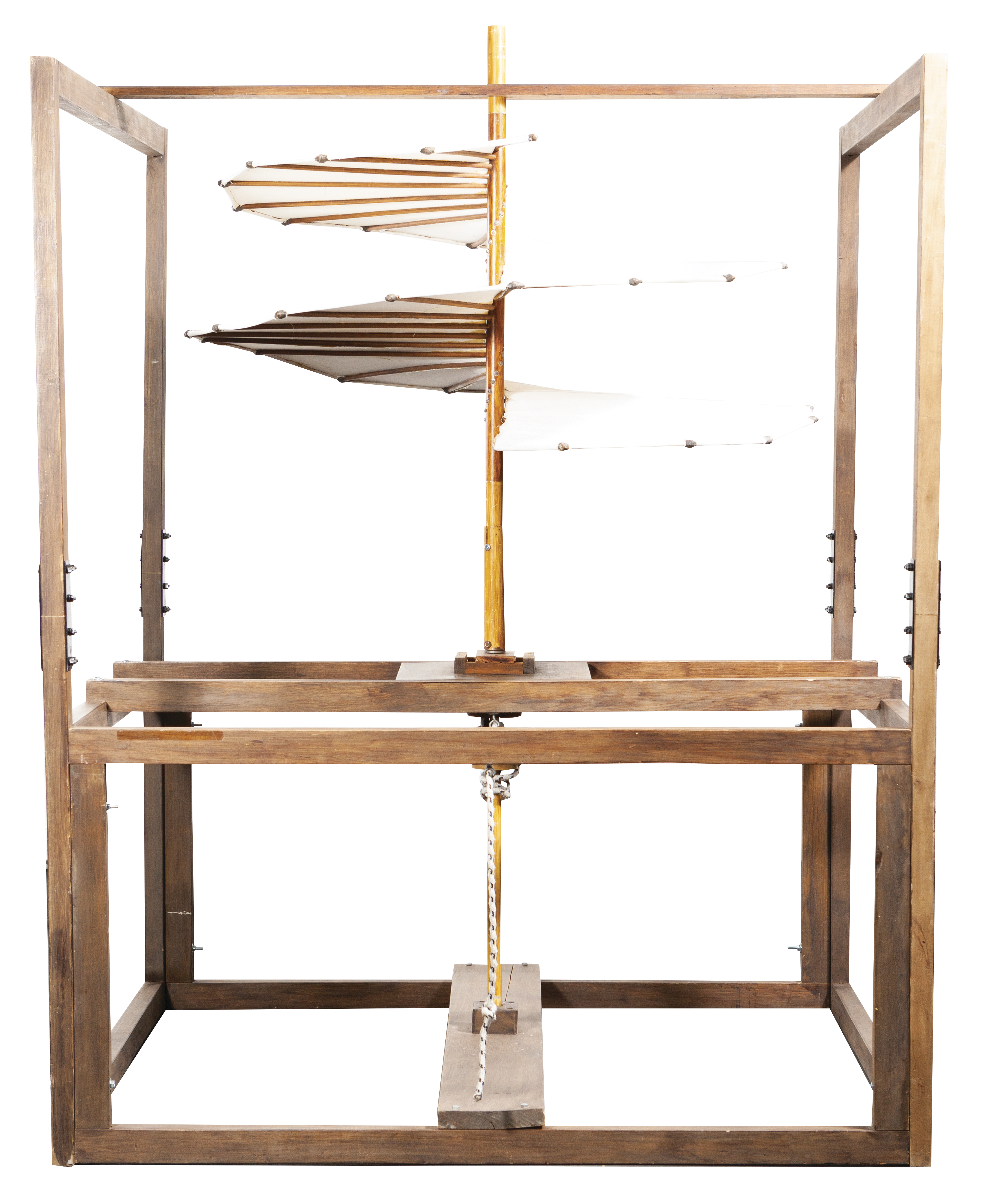 Fascinado por la idea del vuelo humano, Leonardo da Vinci investigó tanto la dinámica del cuerpo humano como las propiedades del aire. Al observar que el aire, a diferencia del agua, es compresible bajo presión, desarrolló la teoría de que un tornillo giratorio podría generar sustentación al interactuar con este medio fluido. Este diseño seguía el principio de un tornillo que se enrosca en un material sólido, pero adaptado para desplazarse en el aire.